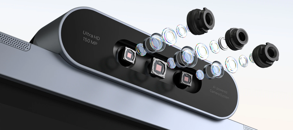 Tersedia pilihan 65”, 75”, dan 86”. Tampilan tajam, anti silau, dan mendukung multi-touch. - Kamera AI Multi-Lensa